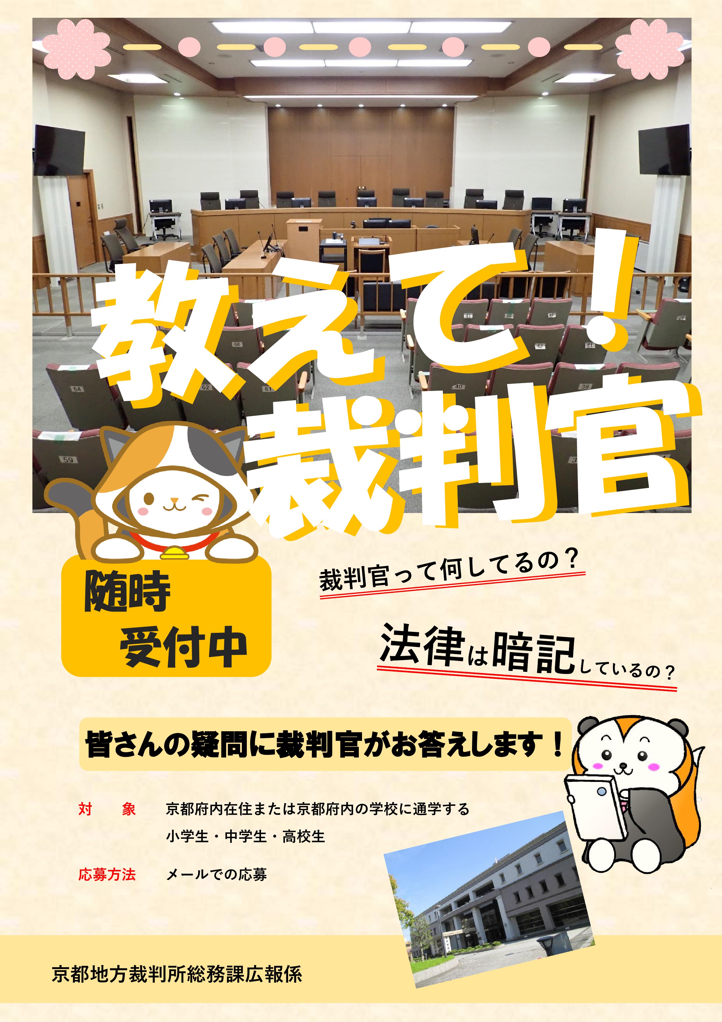 京都地方裁判所で働く裁判官が、皆さんの疑問にお答えします。(募集)